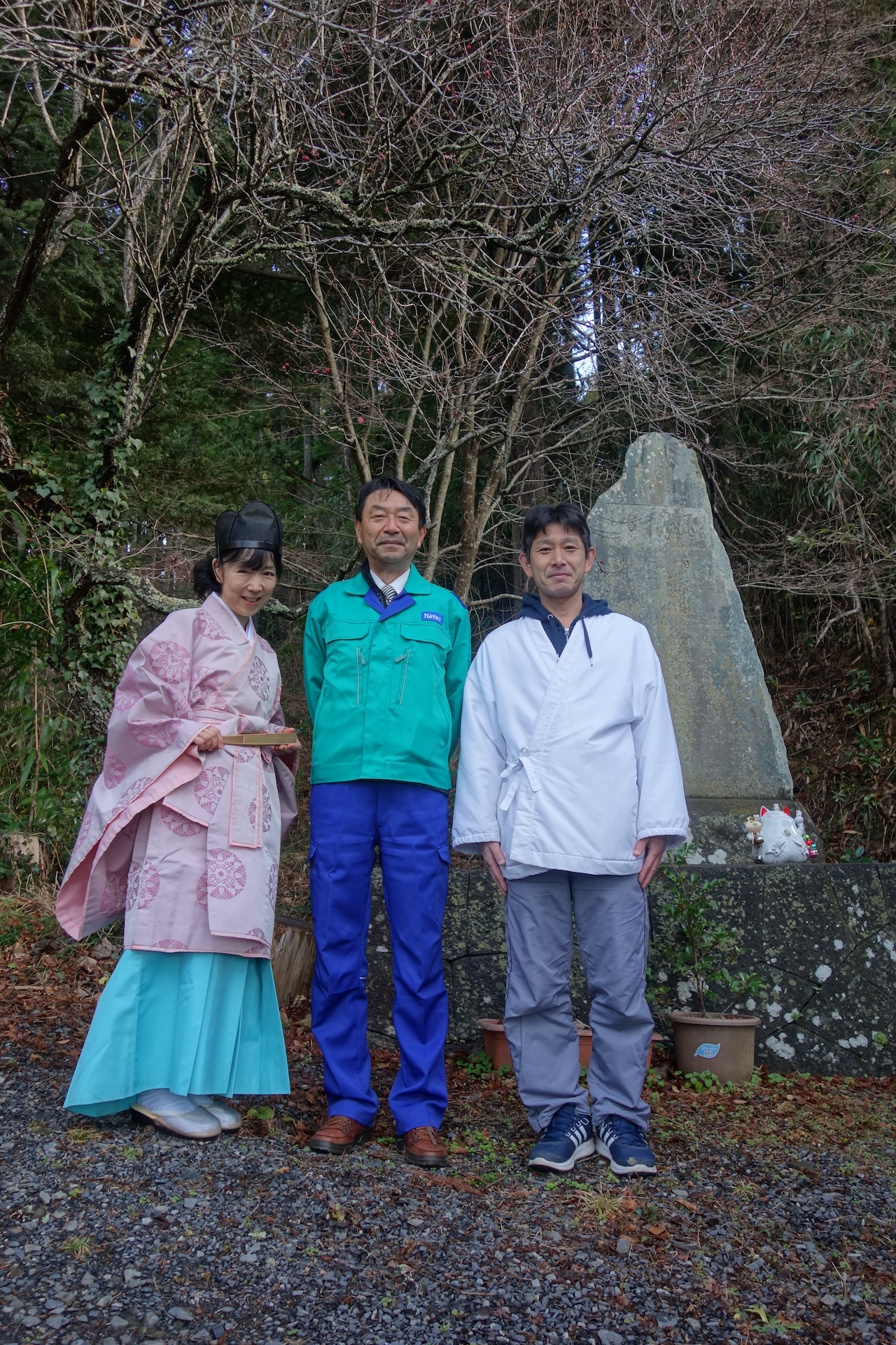 その後、南三陸町の上山八幡宮で安全祈願をしました。禰宜の工藤真弓さんから、「年頭の挨拶」をいただき、一同感激しました。帰り際、境内にある梅に一輪二輪。今年は春から縁起が良いですね。