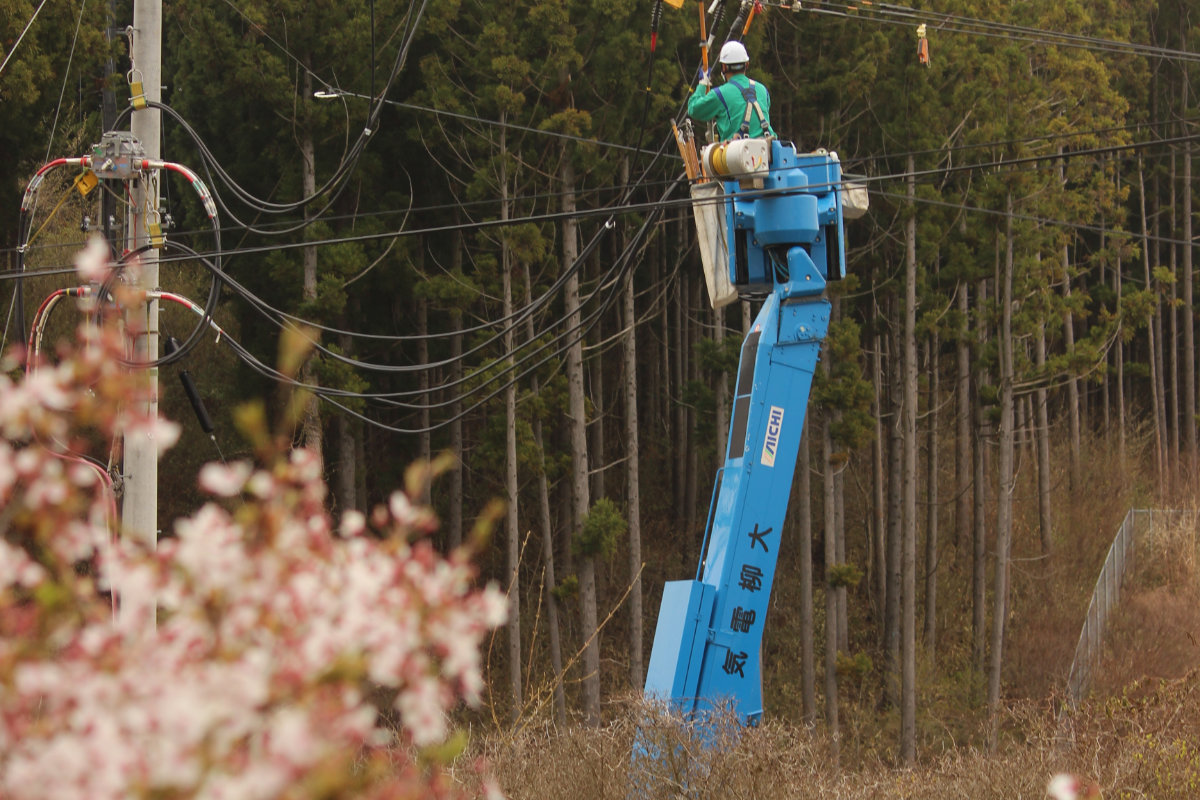 4月12日、当社は、登米市豊里町の「さくら公園」での仕事でした。桜吹雪のなか、社員は懸命の仕事ぶり。